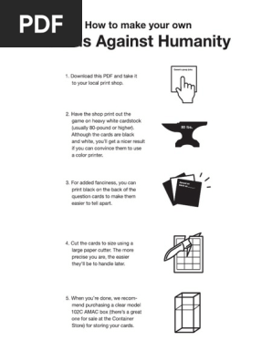 If this is your first time playing, you may wish to read the changelog and list of known issues. Consecutive _'s can be used to customize underline length. Your computer's ip address will always be logged when you load the game client. How to make your own cards against humanity: Cards against humanity recently had an open call for submissions which reminded me that i'd never posted about my very first foray into making custom game expansions three years ago. First posted on kickstarter in 2010, the game raised $4,000 in two weeks, eventually raising over 400% of its initial goal. Cards against humanity's got you covered with our most absorbent pack yet: If this is your first time playing, you may wish to read the changelog and list of known issues. To assist with development, all traffic on this server may be logged. Scroll down to 'play your favorite tabletop game or make your own' > 'cards against humanity' > 'start game'. Easy peasy to play with your friends if you read: Touch device users, explore by touch or with swipe gestures. Cards against humanity uses helvetica neue bold as its typeface.
